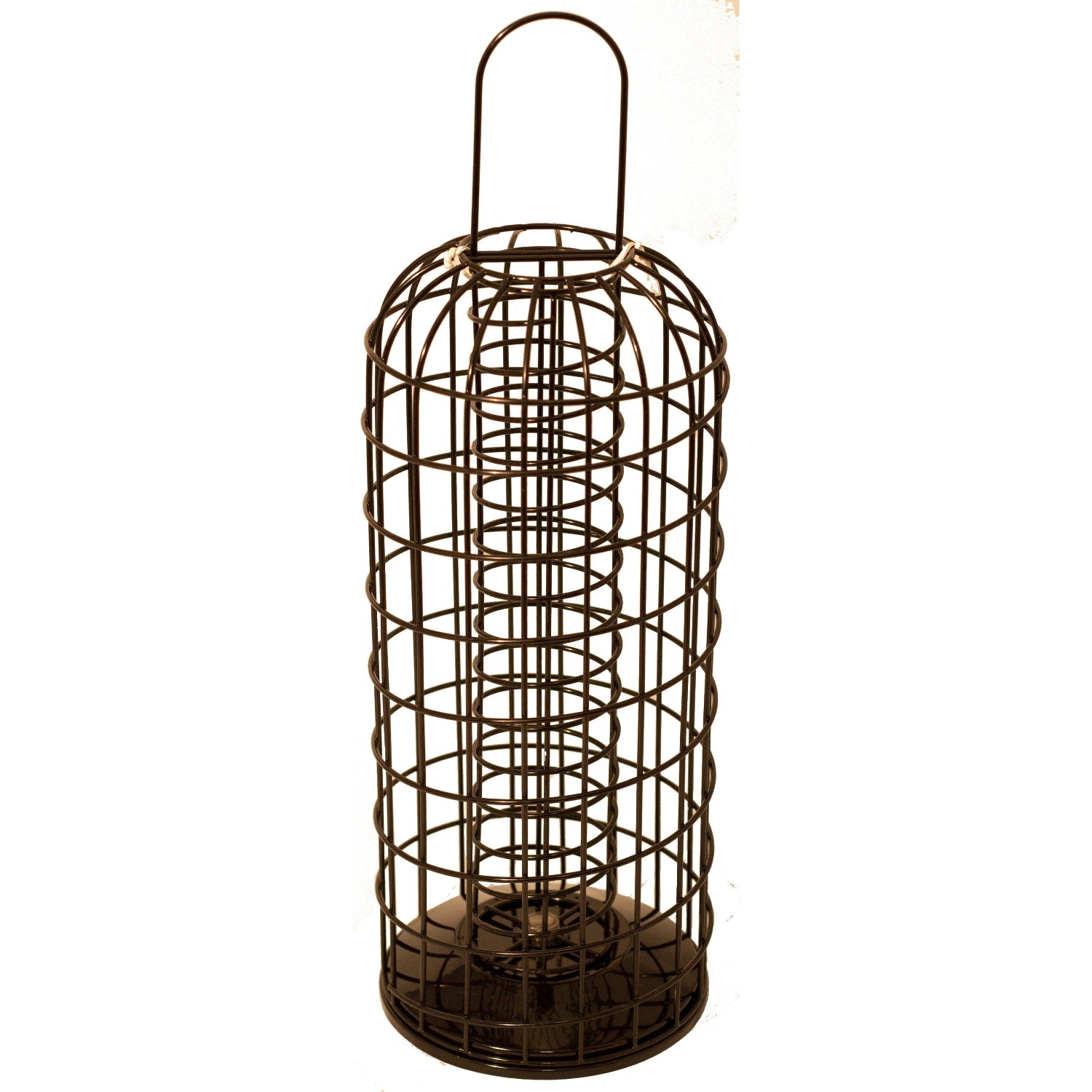 These squirrel-proof (and large bird-proof) bird feeders work by the holes in the surrounding protective cage only being large enough to let in the smaller species of garden bird. Squirrels and larger birds cannot fit through the cage mesh and soon lose interest in the bird feeder. The bird feeder inside is the same quality bird feeder you can buy individually. The bird feeder is mounted on the metal seed catcher tray, which forms the base of the guardian cage. If you want any spilled food to be deflected onto the floor so that the excluded animals can still feed, then the catcher tray can be turned upside down to the desired position (either the seed deflector or the catcher).